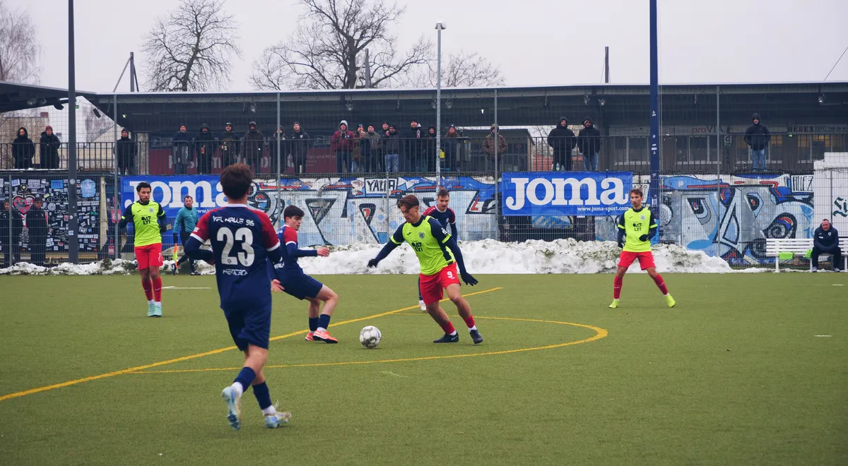 Unsere Equipe gewinnt das erste Testspiel des Jahres 2026 gegen den VfL Halle 96 (Oberliga Süd Sachsen-Anhalt) deutlich mit 6:0.