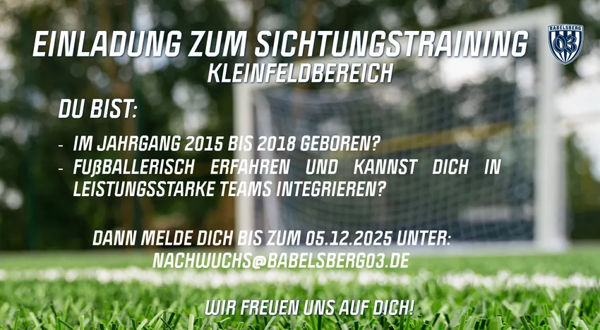 Melde dich unter nachwuchs@babelsberg03.de bis zum 05.12.2025 und werde Teil der 03-Familie.