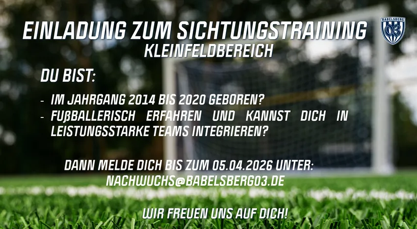 Melde dich unter nachwuchs@babelsberg03.de bis zum 05.04.2026 und werde Teil der 03-Familie.